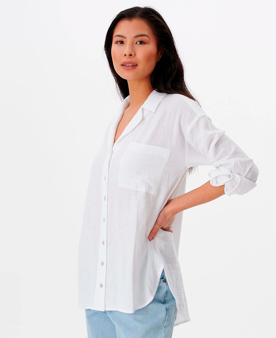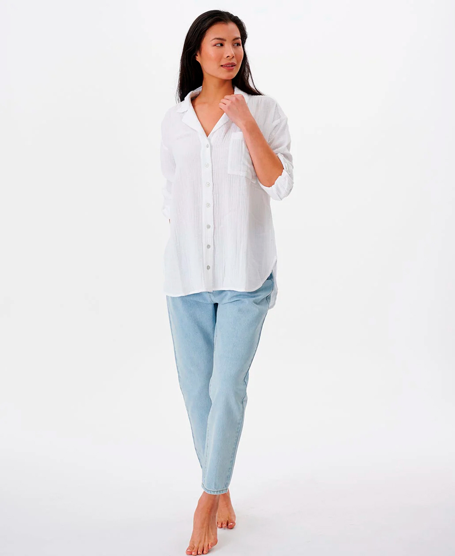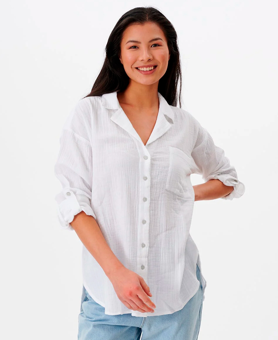 Camisa Rip Curl Premium Surf Luce un look relajado y elegante con la camisa Premium Surf de manga larga con botones. Confeccionada en gasa de algodón de doble trama, esta camisa presenta un corte relajado y un lavado en prenda para mayor suavidad. Las mangas enrolladas le dan un toque moderno, mientras que el diseño abotonado ofrece versatilidad. Tanto para ocasiones formales como informales, esta camisa de manga larga es una opción moderna para cualquier ocasión.