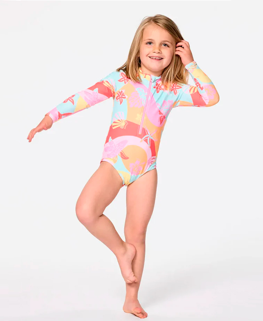Lycra Rip Curl isLand UV50. WARPKNIT LYCRA® EXTRA LIFE™. Standard fit. Proteccion UPF 50+UV. Resistente al cloro. Xtralife lycra. Cierre delantero. Fullprint. Etiqueta tejida.